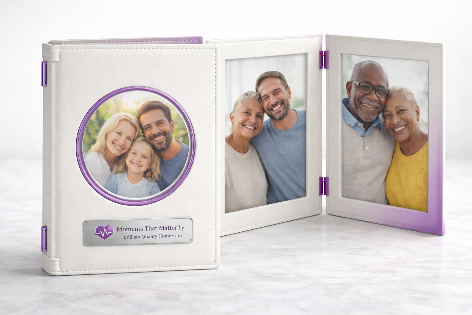 A thermochromic plastic/acrylic photo frame that reveals an accent color with heat. Album-style hinged frame design with custom logo printing — MOQ-friendly and perfect for gifts.